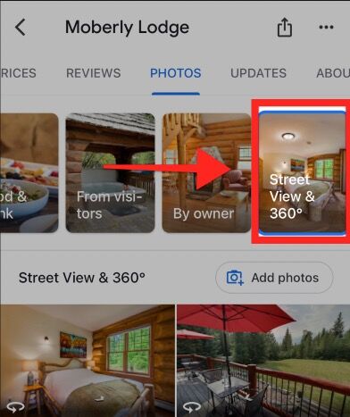 In the Google Maps app on mobile devices you will find the 360° images under the PHOTOS tab in the Street View & 360° thumbnail